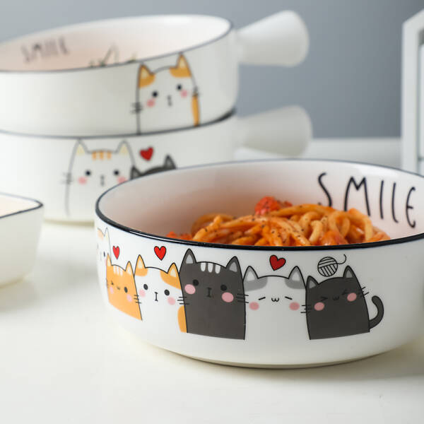 Cat Kitchen Bowl ชามลายน้องแมว การแต่งบ้านให้สวยน่าอยู่นั้นมาจากหลายปัจจัย ไม่ใช่แค่เฟอร์นิเจอร์ชิ้นใหญ่ๆ กรอบรูปสวยๆ ทีวีจอเบ้อเริ่ม แต่เราต้องใส่ใจในทุกๆรายละเอียดเล็กๆ เพราะของใช้เล็กๆ ในบ้านนี่แหละจะเติมเต็มส่วนที่ขาด ได้ Home Studio ขอเสนอ Cat Kitchen Bowl ชามลายน้องแมว เกรดพรีเมี่ยม สุดคิ้ว มีมาให้เลือกทั้งในรูปแบบของชุด จาน และ ถ้วยชาม เหมาะสำหรับทุกห้องและทุกมุมในบ้าน ไม่ว่าจะเป็นโต๊ะรับแขก โต๊ะอาหาร หรือแม้แต่โต๊ะนั่งเล่นที่สวน ช่วยเติมความหรูหราให้กับทุกมุมบ้านของคุณค่า ไม่เพียงจะเอาไว้ตกแต่งอย่างเดียวน้า สามารถเอาไปใช้เป็นชามสำหรับทานอาหารได้จริงๆ ด้วยนาจา