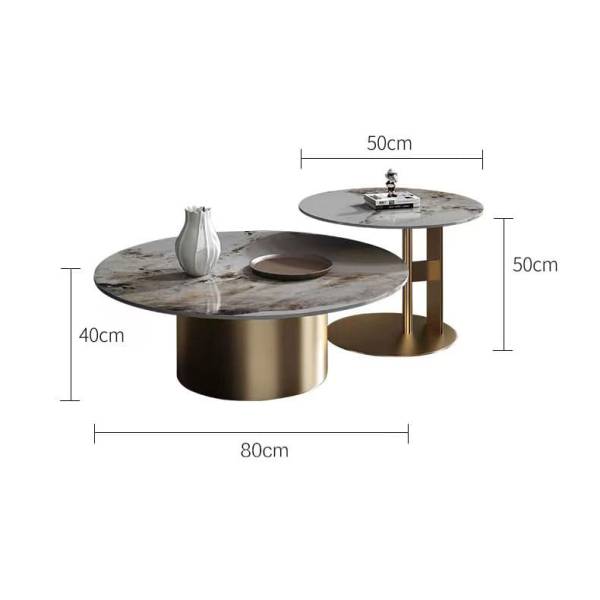 Circle Designed Luxury Livingroom Table Set ชุดโต๊ะกลางท็อปหินอ่อนวงกลม ดีไซน์รูปทรงกลมที่มาพร้อมกันถึง 2 ชิ้น ซ้อนกันต่างระดับอย่างมีสไตล์ เหมาะสำหรับการนำไปใช้งานในห้องรับแขกของคุณ ด้วยจุดเด่นของโต๊ะกลางชุดนี้ที่มีถึง 2 ตัว จึงทำให้มีพื้นที่ในการทำกิจกรรมต่างๆเพิ่มมากขึ้น ไม่ว่าจะจัดงานปาร์ตี้ นั่งทานข้าว หรือพักผ่อนกับครอบครัวในวันหยุด อีกทั้งยังสามารถช่วยยกระดับให้บ้านของคุณดูมีเสน่ห์น่าหลงไหลยิ่งขึ้น ทั้งคุณสมบัติในการใช้งานก็ดี คุณสมบัติในการตกแต่งบ้านก็ดี และยิ่งได้โต๊ะกลางดีไซน์หรูชิ้นนี้ ก็จะยิ่งช่วยให้บ้านของคุณโดดเด่น มีมิติ และก็สร้างความประทับใจให้กับแขกที่มาบ้านไม่รู้ลืม