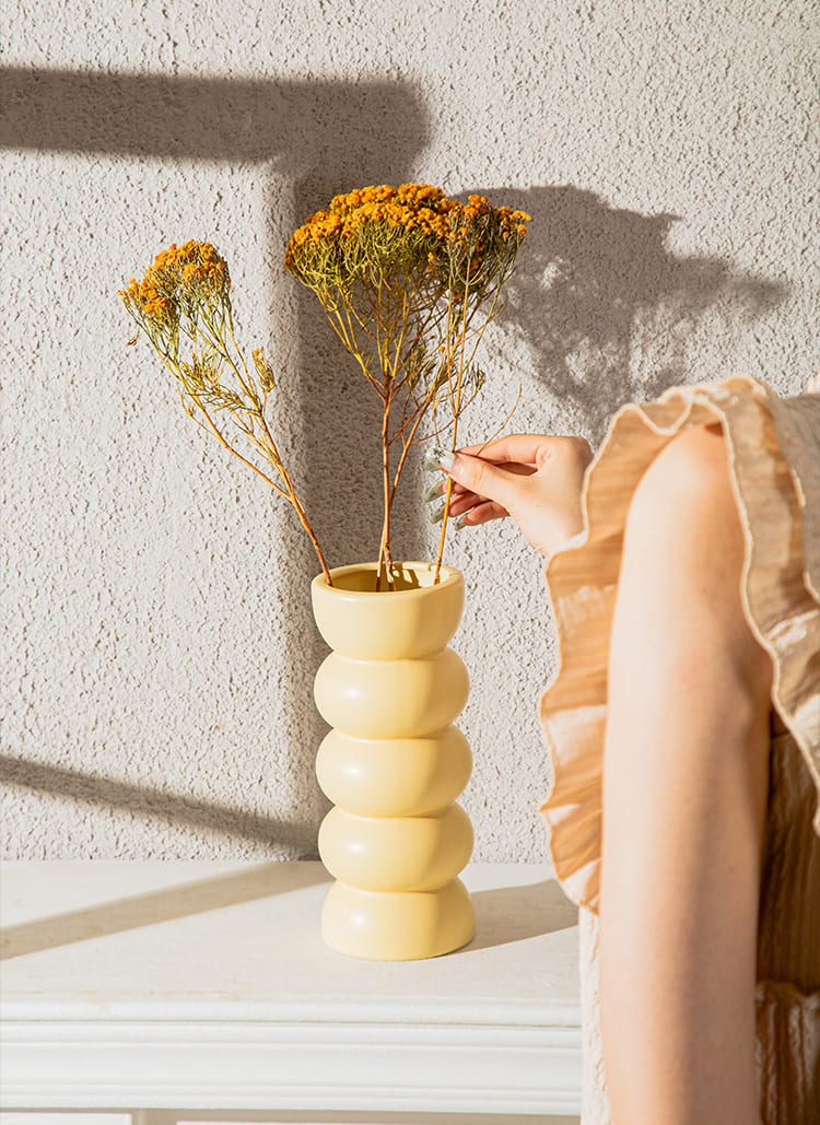 Homie Decorating Vase IX แจกันดอกไม้ตกแต่งบ้าน ผ่านการคิดและเข้าใจความต้องการเป็นอย่างดี ด้วยวัสดุคุณภาพดี ไม่ว่าจะวางไว้มุมไหนของบ้านก็ดูดี และหากว่ามีดอกไม้ดอกสวยมาเติมเต็ม รับรองเลยว่าบรรยากาศภายในบ้านของคุณจะพิเศษขึ้น ราวกับอยู่ในสวนดอกไม้เลยทีเดียว มาสร้างความสดใส มีชีวิตชีวาให้กับบ้าน และสร้างความผ่อนคลายให้กับตัวคุณด้วยสินค้าจาก Home Studio นะคะ หนึ่งสิ่งที่จะช่วยสร้างความสดชื่นและผ่อนคลายให้กับผู้อยู่อาศัยในบ้านก็คือธรรมชาติ ไม่ว่าจะเป็นต้นไม้หรือดอกไม้ก็ช่วยได้เหมือนกัน แต่กับบางคนการปลูกต้นไม้อาจจะดูเป็นเรื่องที่ไกลตัวเกินไป เนื่องจากพื้นที่ไม่เอื้ออำนวย ฉะนั้นแล้วก็เหลืออีกหนึ่งทางก็คือดอกไม้ ที่เราไม่จำเป็นต้องปลูกให้งอกงาม แต่สามารถหาซื้อได้ทั่วไปแล้วนำมาตั้งไว้ในบ้านได้เลย นอกจากจะช่วยให้ผ่อนคลายแล้วนั้น ยังช่วยให้บ้านของเราโดดเด่นและสวยงามขึ้นอีกด้วย แต่การที่เราจะเลือกใช้ดอกไม้มาวางไว้ในบ้านนั้น ก็ใช่ว่าซื้อมาแล้วจะวางไว้ได้เลย เราจำเป็นที่จะต้องมีแจกันใบสวยสักใบในการบรรจุดอกไม้ลงไป และแจกันใบนั้นจะต้องช่วยเสริมให้บ้านและสิ่งรอบข้างภายในบ้านโดดเด่น น่ามองขึ้นด้วย วันนี้ Home Studio ก็มีแจกันมาแนะนำที่ทั้งดีไซน์สวยและเข้าใจถึงแก่นความต้องการของคุณ