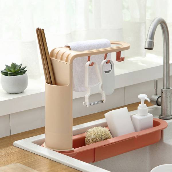 Kitchen Sink Storage Rack ที่เก็บอุปกรณ์ล้างจานอเนกประสงค์ ให้การล้างจานทำงานบริเวณอ้างล่างจานเป็นเรื่องสะดวกสบายด้วย Kitchen Sink Storage Rack ที่เก็บอุปกรณ์ล้างจานอเนกประสงค์ ออกแบบมาให้มีฟังก์ชั่นหลากหลาย ทั้งรางวางฟองน้ำและอุปกรณ์อื่นๆ ราวแขวนผ้าเช็ดมือ ช่องใส่ช้อนส้อม เป็นต้น ช่องระบายน้ำตามราง หมดกังวลเรื่องน้ำขัง อีกทั้งตัวรางสามารถปรับความยาวให้พอดีกับขอบอ่างล้างจานได้ อ่างเล็กอ่างใหญ่ก็ไม่ต้องกังวลเลยค่า มีมาให้เลือกกันถึง 4 สีสดใสสุดๆไปเลยค่าาา