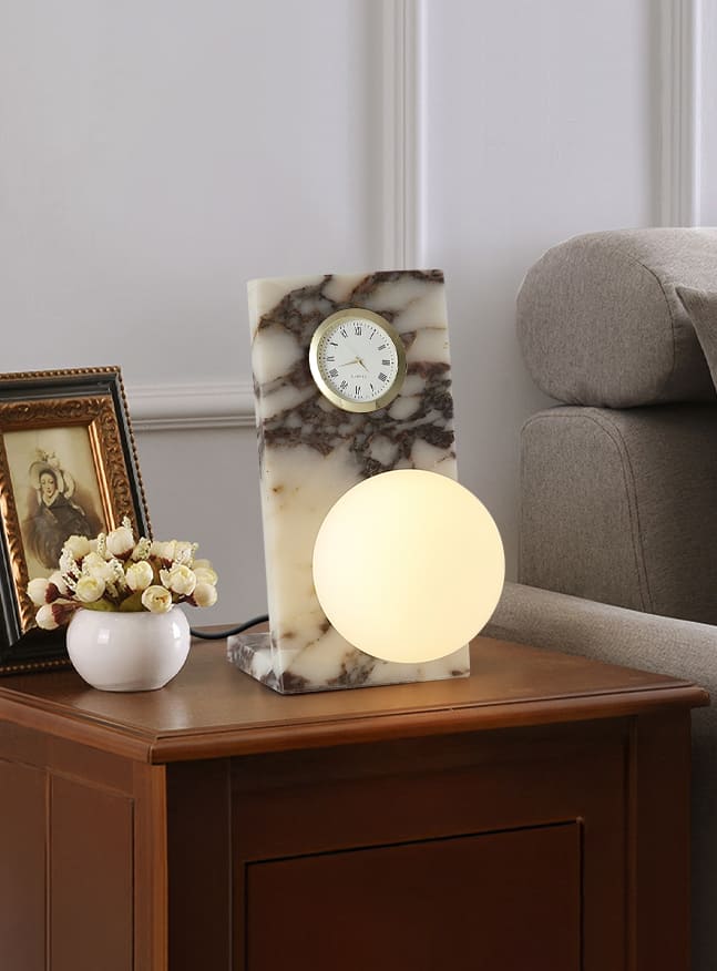 Marble Glow Clock Lamp นาฬิกาโคมไฟตั้งโต๊ะตกแต่งบ้าน ช่วยให้บ้านของคุณดูหรูหราขึ้น ด้วยรูปแบบการดีไซน์ที่ทันสมัย รูปทรงล้ำสมัย แปลกตา สร้างความโดดเด่นให้กับมุมบ้านของคุณได้เป็นอย่างดี อีกทั้งยังมีน้ำหนักเบา ดูแลรักษาง่ายและแข็งแรงทนทานต่อการใช้งานแน่นอนค่ะ ไม่ว่าจะนำไปใช้งานในห้องไหนของบ้านก็เหมาะสมและลงตัว จะนำไปใช้งานในห้องนอนก็ช่วยเพิ่มบรรยากาศให้ดูอบอุ่น นุ่มนวลขึ้น ช่วยให้รู้สึกผ่อนคลายหลับสบายตลอดทั้งคืน หรือหากจะนำไปใช้งานในห้องรับแขกก็จะช่วยเพิ่มแสงสว่าง สะดวกต่อการทำกิจกรรมร่วมกันกับคนในครอบครัว หรือว่าจะนำไปใช้งานในห้องทำงานก็เหมาะสม เพราะแสงไฟที่มีปริมาณพอดีส่งผลต่อสายตา ทำให้รู้สึกสบายตาและผ่อนคลายในการทำกิจกรรมต่างๆ ไม่เพียงแค่ประโยชน์ที่เอื้อต่อคนในบ้าน ยังเอื้อต่อบ้านของเราที่ดูดีขึ้นและมีเสน่ห์น่าสนใจขึ้นอีกด้วยไงล่ะค้าา