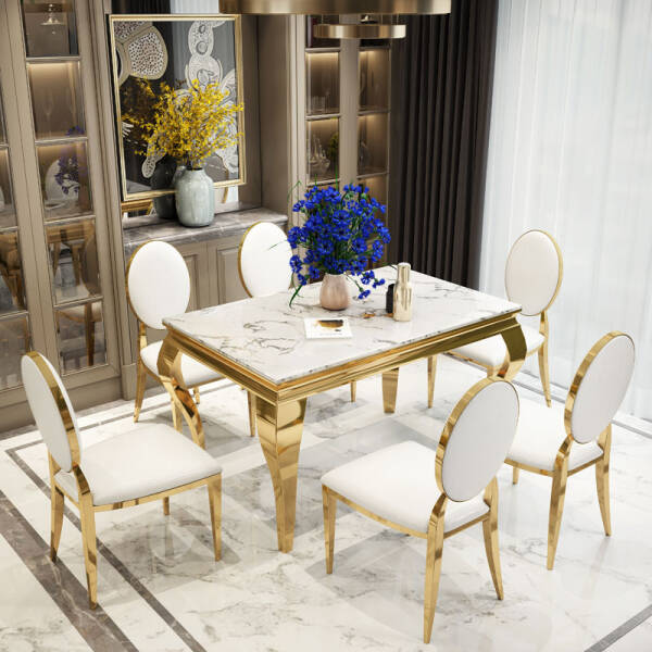 ให้เราเป็นส่วนหนึ่งของความสุขในทุกมื้อสำคัญ ด้วย Marble Luxury Dining Table II โต๊ะอาหารลายหินอ่อน เฟอร์นิเจอร์สำหรับห้องครัวหรือห้องรับประทานอาหารวันนี้ Home Studio ขอเสนอ โต๊ะอาหารแบบท๊อปหินอ่อนสังเคราะห์ลวดลายสวยงาม พร้อมขาโต๊ะสีทองเพิ่มความหรูหรายิ่งขึ้นไปอีก แข็งแรงทนทาน อีกทั้งยังช่วยตอบโจทย์ให้กับทุกความต้องการ ด้วยโต๊ะอาหารที่มีขนาดเล็กเพื่อความเหมาะสมสำหรับคอนโดหรือบ้านที่มีพื้นที่จำกัด รวมไปจนถึงโต๊ะอาหารขนาดใหญ่สำหรับรองรับครอบครัวใหญ่อีกด้วยจ้า