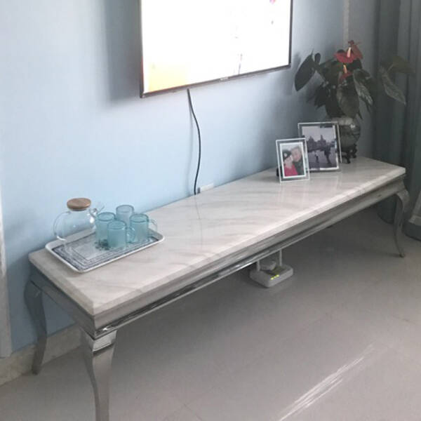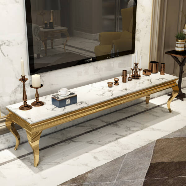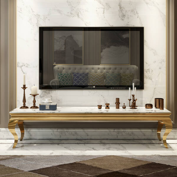 Marble Luxury TV Table III โต๊ะวางทีวีท็อปหินอ่อน มาพร้อมกับดีไซน์พิเศษเพื่อคุณ ไม่เพียงแต่พื้นที่ในส่วนของท็อปที่ใช้วางทีวีเท่านั้น ยังมีพื้นที่สำหรับวางของและเก็บของเพิ่มเข้ามาที่ด้านล่างอีกด้วย โดยในส่วนของ Top หินอ่อนนั้นแฝงไปด้วยความเรียบหรู ผสานเข้ากับโครงขาโต๊ะดีไซน์เรียบง่าย จึงเกิดเป็นโต๊ะวางทีวี ที่มีความลงตัวทั้งในด้านของความสวยงามและการใช้งาน หากนำไปวางไว้ที่มุมพักผ่อนมุมโปรดของคุณ รับรองว่าจะสร้างความประทับใจให้แก่คุณผู้พบเห็นได้เป็นอย่างดีเยี่ยมเลยล่ะค่ะ