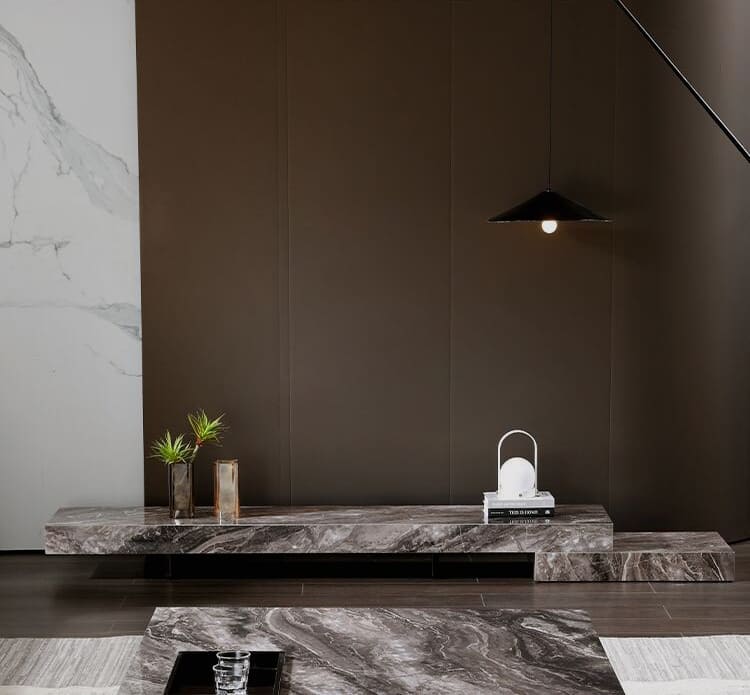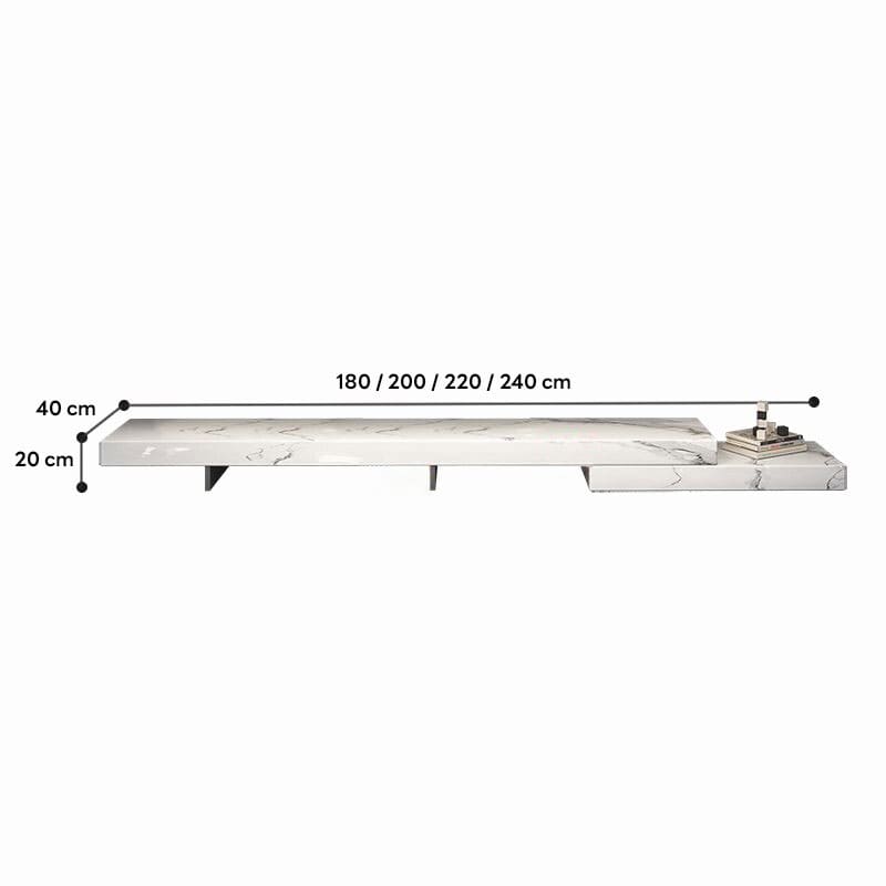 Monolith Slim Floating TV Table โต๊ะวางทีวีท็อปหินอ่อน มาพร้อมกับดีไซน์พิเศษเพื่อคุณ ไม่เพียงแต่พื้นที่ในส่วนของท็อปที่ใช้วางทีวีเท่านั้น ยังมีพื้นที่สำหรับวางของและเก็บของเพิ่มเข้ามาที่ด้านล่างอีกด้วย โดยในส่วนของ Top หินอ่อนนั้นแฝงไปด้วยความเรียบหรู ผสานเข้ากับโครงขาโต๊ะดีไซน์เรียบง่าย จึงเกิดเป็นโต๊ะวางทีวี ที่มีความลงตัวทั้งในด้านของความสวยงามและการใช้งาน หากนำไปวางไว้ที่มุมพักผ่อนมุมโปรดของคุณ รับรองว่าจะสร้างความประทับใจให้แก่คุณผู้พบเห็นได้เป็นอย่างดีเยี่ยมเลยล่ะค่ะ