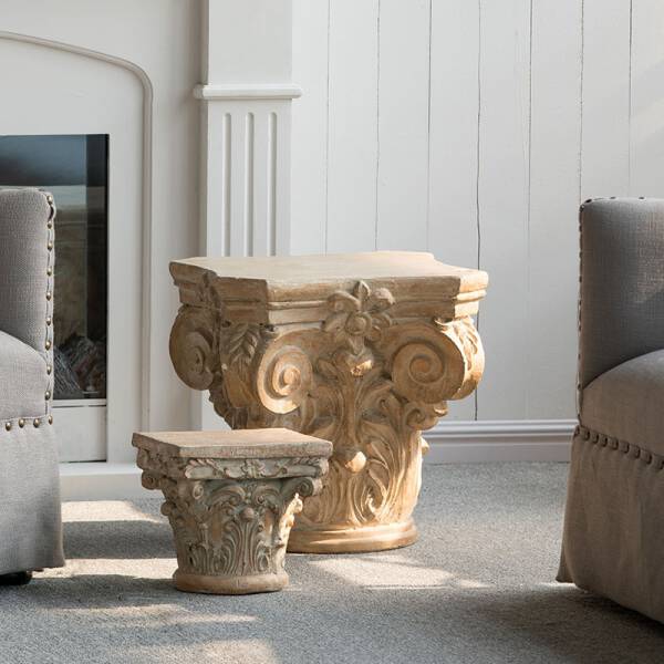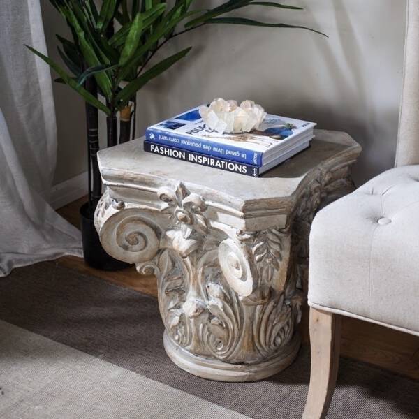 Roman Pillar Side Table โต๊ะข้างทรงเสาแบบโครินเธียน ช่วยเพิ่มความหรูหราให้กับห้องของคุณด้วยตัวโต๊ะข้าง ดีไซน์สวยงามเรียบหรูสไตล์กรีกโรมัน มีเอกลักษณ์เฉพาะตัว ดูเรียบหรูแต่มีสไตล์ น่าใช้งาน โครงสร้างแข็งแรง ทนทานต่อการใช้งาน เหมาะกับการจัดวางไว้ข้างชุดโซฟาหรือข้างเตียงนอน ด้วยดีไซน์โดดเด่นสวยงามไม่เหมือนใครจะช่วยทำให้บ้านของคุณดูดีมีสไตล์ในแบบที่คุณต้องการ เคลื่อนย้ายได้ง่าย เหมาะสำหรับนำไปวางตกแต่งบริเวณข้างเตียง โซฟา หรือตามมุมต่างๆภายในบ้าน