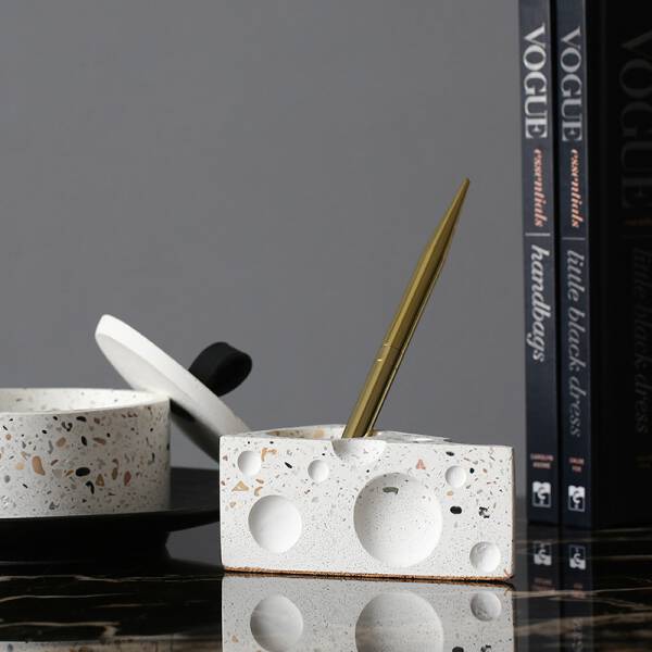 Terrazzo Designed Pencil Holder ที่เสียบปากกาลายหินขัด จัดระเบียบโต๊ะทำงานให้เป็นระเบียบไปกับ Terrazzo Designed Pencil Holder ที่เสียบปากกาลายหินขัด ไม่เพียงเหมาะกับการใช้งานบนโต๊ะ เพราะทั้งยังโดดเด่นในเรื่องการออกแบบ เหมาะแก่การประดับโต๊ะเป็นที่สุด ด้วยลายหินอ่อนเพิ่มความคลาสสิกให้โต๊ะทำงานเข้าไปอีก